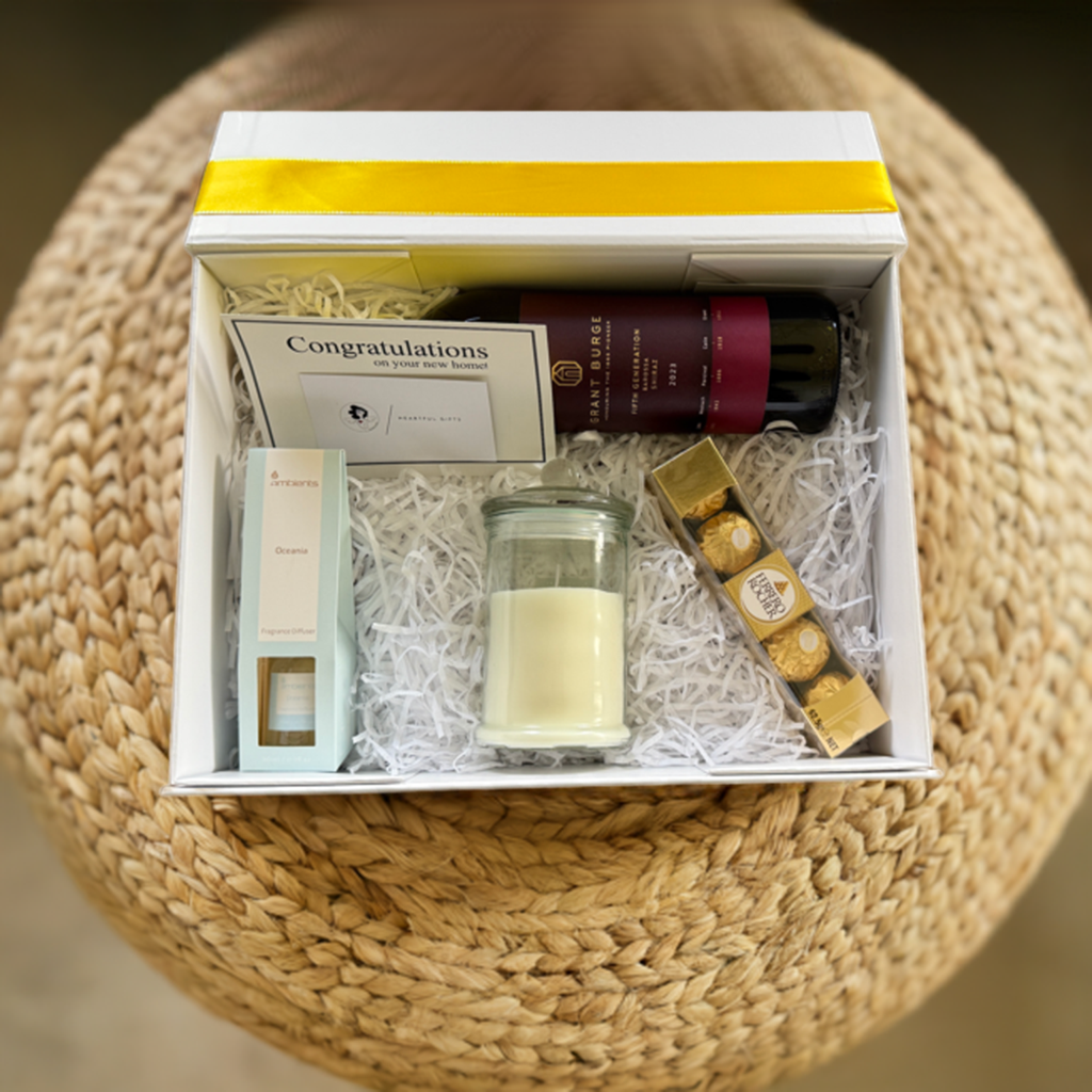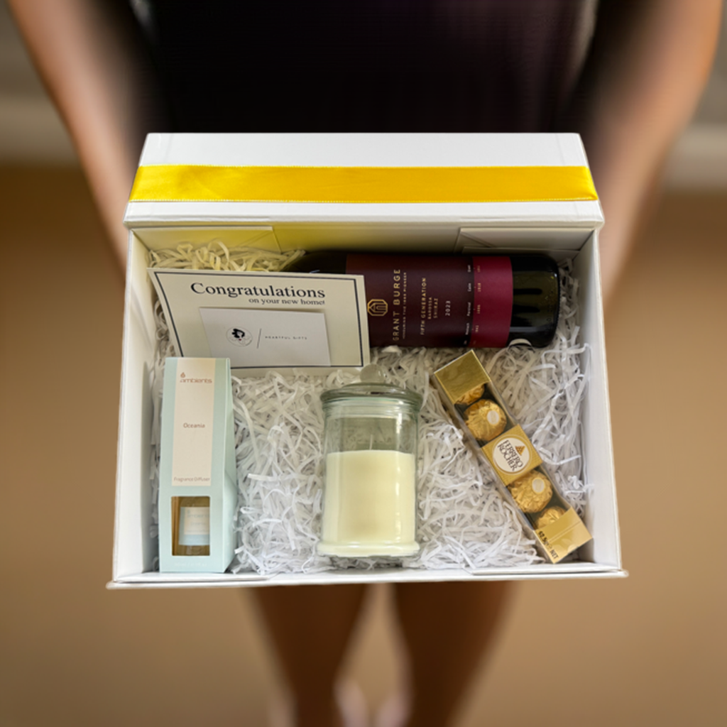 Our Welcome Home - Signature gift box is a customer favourite and for good reason! Packed with a bottle of fine wine, indulgent chocolate, a soothing candle, and an elegant reed diffuser, it’s the perfect combination to celebrate settling into a new home. All this at an unbeatable price.